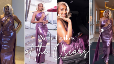 Nene Leakes Hits Oscars 2026 Parties in Purple Metallic Michael Costello Gown