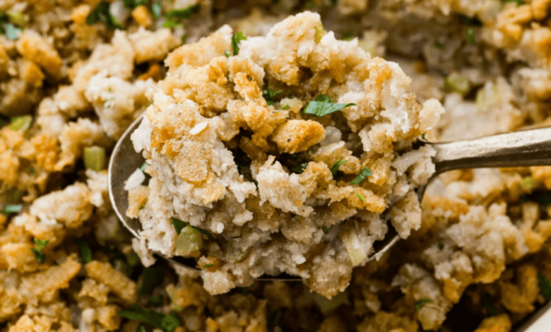 - Bake: Transfer the stuffing mixture to the prepared dish, then cover with foil and bake for 20-25 minutes. Remove the foil and bake for an additional 10-15 minutes or until golden brown.