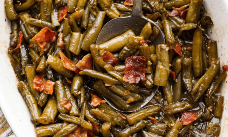 Crack green beans are the side dish that guarantees seconds! Tender green beans bake in a sweet-savory buttery sauce with smoky bacon. These are simple to make, wildly addictive, and gone in minutes.