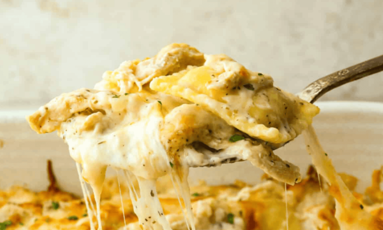 By the end of the day, I’m wiped and still expected to make dinner. This Alfredo ravioli casserole swoops in and saves the night. Just layer everything, bake it, and dinner is done.