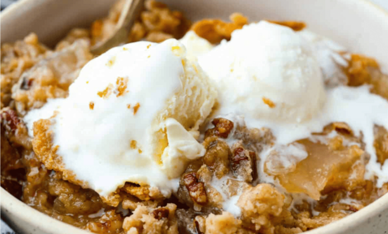 - Cake Mix: Sprinkle the cake mixture evenly over the apple pie filling.