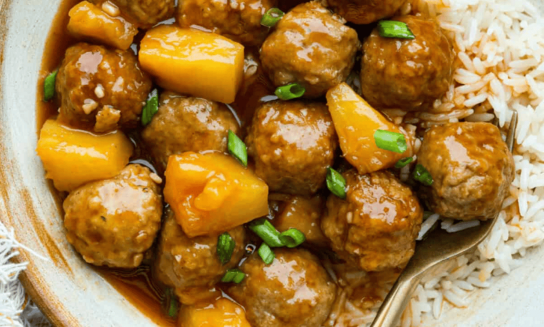 Getting dinner on the table doesn’t get much easier than this! Slow cooker Hawaiian meatballs recipe. Just toss everything in, let it cook, and come back to a saucy, flavorful meal.