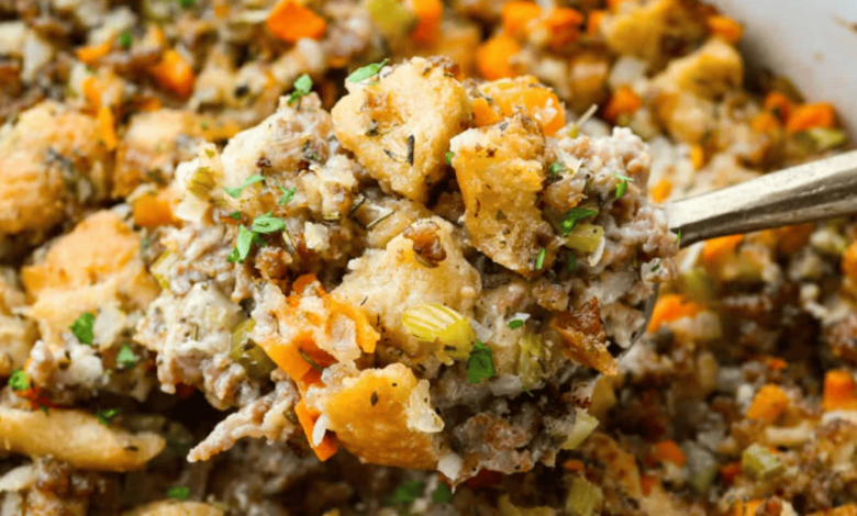 Why did it take me this long to make sourdough stuffing? The tangy crust and chewy middle are pure perfection, soaking up all that buttery, herby goodness like it was meant to be.
