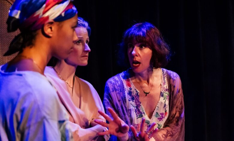 Photo by Jeff Lorch: Angelie Simone, Mamie Gummer, Julie Shavers in THE BAPTIST WITCHES OF SHELBYVILLE.